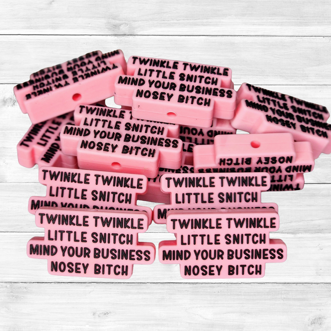 Add a bold twist to your beadable pens, keychains, and more with these funny, sarcastic, adult-humor silicone focal beads. Each bead features bold, sarcastic phrases and has designs that grab attention and spark conversations & laughs.
