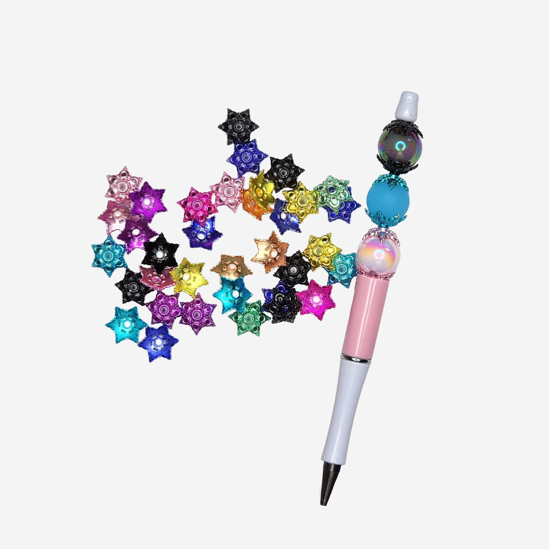 Add vibrant flair to your pen projects with this 20-pack of 15mm Bead Cage Caps in assorted colors. Perfect for beading enthusiasts, these mix-color cage caps offer a unique touch that enhances the beauty and detail of your creations. Made with quality materials, they securely hold beads in place while adding a decorative finish.